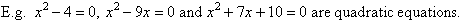 If the highest power of the pronumeral in an equation is two, then it is said to be a quadratic equation.