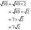 Look for perfect squares that are factors of 98.  Try 4, 9, 16 etc.