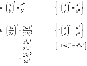 When a quotient is raised to a power, both the numerator and denominator are raised to the power as follows: