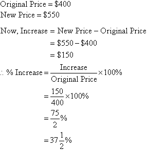The price of a printer increases from $400 to $550. Express this increase as a percentage of the original price.