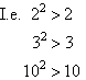 Clearly, the squared value of a number greater than 1 is much greater than the number being squared.