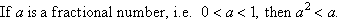Clearly, the squared value of a fractional number is much less than the number being squared.
