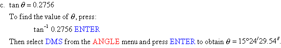 So far we have used a graphics calculator to find the sine, cosine or tangent of a known angle.  We can also determine an angle if its trigonometric ratio is known using inverse trigonometric functions.